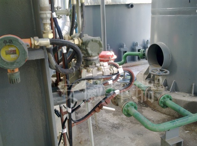 壓力變送器液位計常應(yīng)氣候溫度過低,造成堵塞現(xiàn)象,需要電伴熱防凍,渝豐化工要求其冬季維持溫度為5--10℃,并且要求電伴熱帶具有防爆防腐功能。安徽環(huán)瑞提供ZRDHR-PF46滿足客戶對使用場合及維持溫度要求,其最高表面溫度為70℃,耐溫可達(dá)200℃。可保證維持溫度的情況下,不會出現(xiàn)溫度過高的情況,更加經(jīng)濟(jì)安全,而針對現(xiàn)場細(xì)長狹窄的地方自限溫電熱帶可實(shí)現(xiàn)交叉纏繞,解決局部伴熱的問題。以下為現(xiàn)場施工安裝圖: